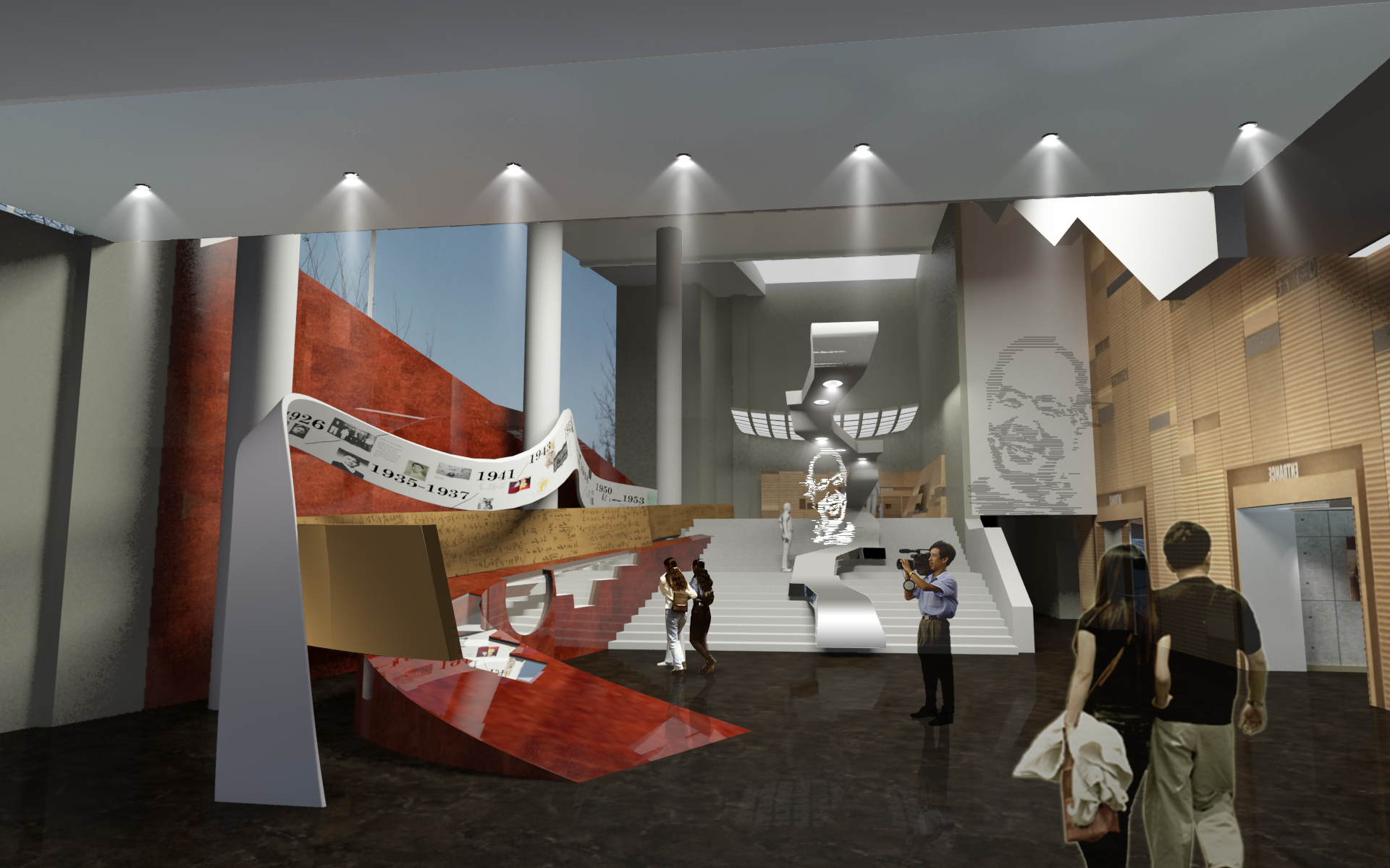 我們都知道,在展館設(shè)計中的主題定位很重要,決定了展館是個什么樣類型的展示館!要確定主題就要調(diào)查這個展示館的歷史背景和文獻,確定真實性和歷史價值性。如果是一個博物館,那就需要詳細可靠的歷史和文獻,而且歷史故事要有條理的進行制作歷史主線,才能做到展館的主題明確;如果是校史館,校史館是一個學校的窗口和靈魂,是大學的精神家園。打破傳統(tǒng)一件文物家加一張說明牌的陳列習慣,采用現(xiàn)代化、人性化、智能化、數(shù)字化等全新的展示手段。比如是企業(yè)館,就要重點考慮企業(yè)背景和產(chǎn)品為整個展館的主題動線。